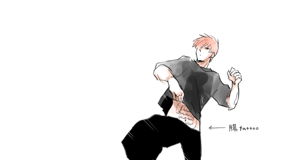 INI へそちら INI 2022.09.22 前述の通り柾哉さまのへそちらガードが鉄壁なところも好きなのだけど、へそチラ絶対しない理由がすごいダサいタトゥーが腹部にあるからとかだったりして─ ところでダサいタトゥーって何?─ …腸? って描いた絵 https://twitter.com/hanya_1N1/status/1572794635608805376