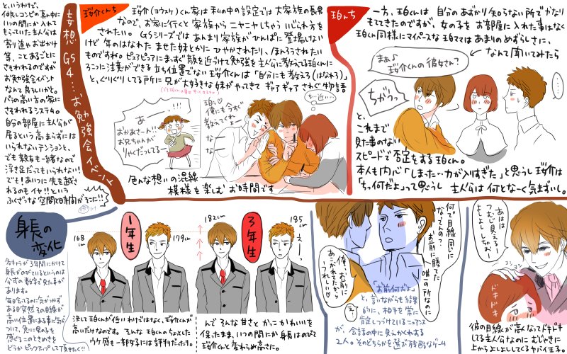 珱介くんの家は私の中の設定では大家族の長男なので、おうちに行くと家族からニヤニヤしちゃういじられ方をされたい。GSシリーズではあまり家族が頻繁に登場しないけど、年の離れたませた妹とかにひやかされたり翻弄されたいものですね。