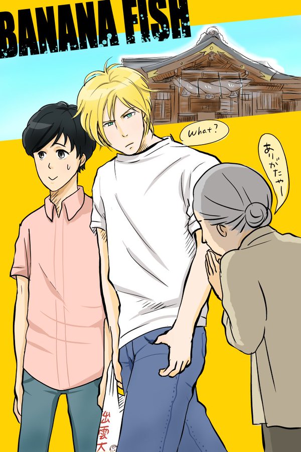 出雲大社見物するアッシュと英二