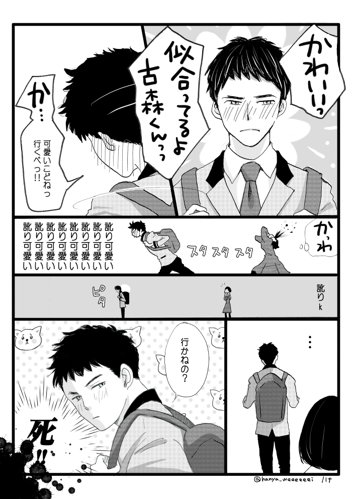 古森拓 手書きこもりん 古森拓 2020.11.01 漫勉みてアナログ手書きしてみたくなって、Gペン買って描いてみた。昔描いた古森くん漫画の短縮版。 https://twitter.com/hanya_weeeeeei/status/1322790576111058944