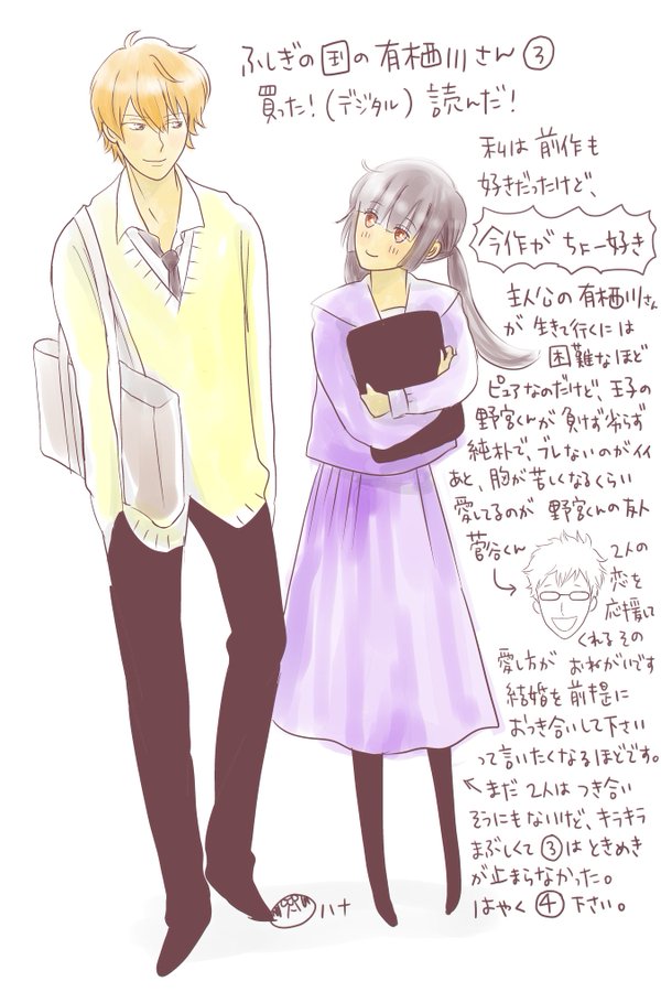 他 有栖川さん 他 2017.09.27 ふしぎな国の有栖川さんの新刊読んだ。 笑えるしときめける。 ついでに夫も好きで読み終わった後「次はやく!」って言ってた。 別マのデジタル版は花ゆめの所に比べたら早いけど、もちっとトントン出てくれると嬉しい。 https://twitter.com/hanya_weeeeeei/status/913014886455590912
