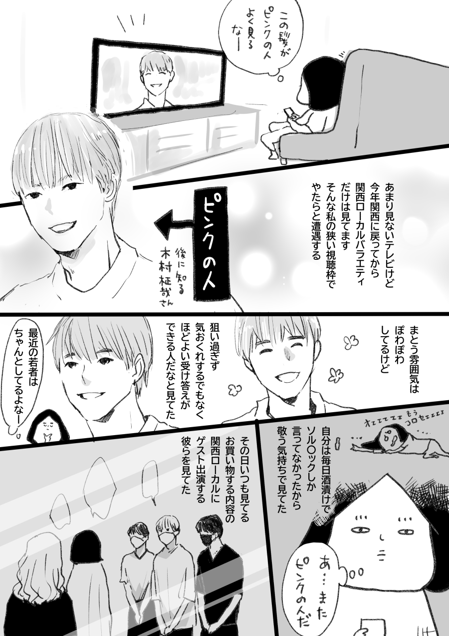 INI INIに気がついた週 INI 2022.08.21 絵が描けない期に見たINIの木村柾哉さまに刺さって宴もたけなわの話。 皆さんもお一つ如何すか?の漫画 https://twitter.com/hanya_weeeeeei/status/1563420218529300481/ https://twitter.com/hanya_weeeeeei/status/1563420225953218561