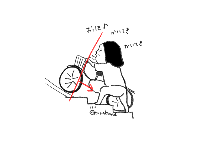 チャリベルト ついった絵 2025.09.18 駐輪場を出る時に、ベルトの上にチャリ乗せて前輪ブレーキをかけることでチャリが上ってくシステム、あれ全然楽じゃないと思ってたけど私は発見した。 ハンドルを持った腕が伸びてハンドルよりも体が後ろにくるように自転車にひっぱってもらう状態でのぼると、めっちゃ楽!うわーいってなった